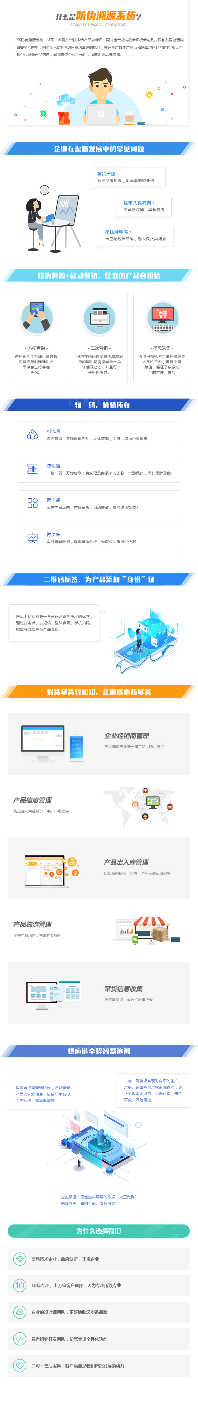 XK防伪溯源系统,采用二维码加密技术给产品做标识,同时也带动消费者积极参与到打假和共同监督商品安全问题中,同时切入防伪溯源+移动营销的概念,在追溯产品生产环节和销售地区的同时也可以了解企业其他产品信息,起到宣传企业的作用,加速企业品牌传播。